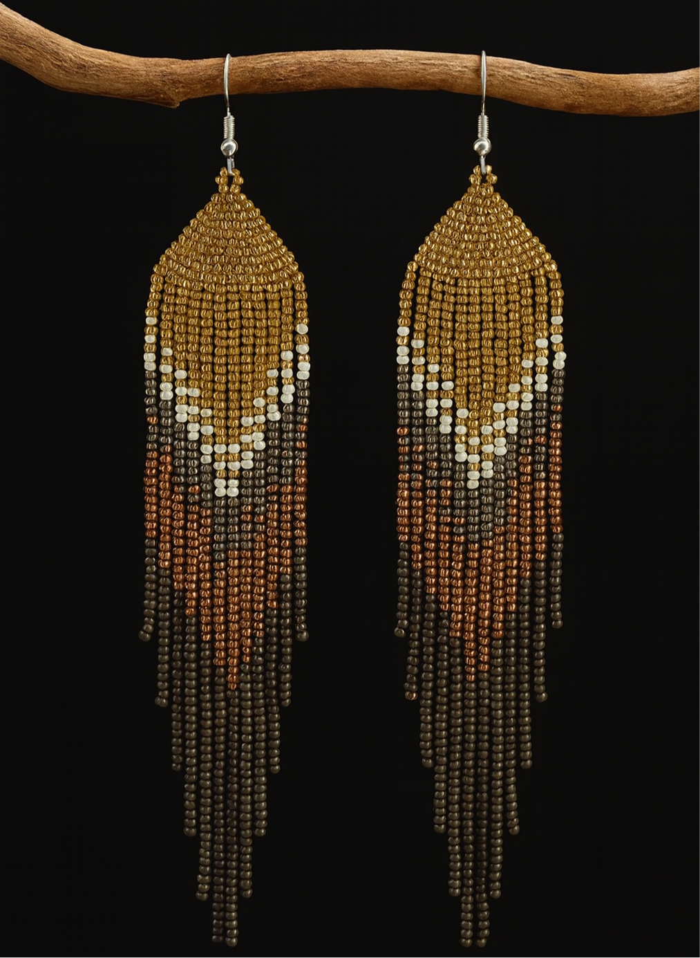 Elevate your boho style with these earth tone handcrafted beaded earrings, beautifully woven with care and artistry. Each pair features intricate beadwork that blends copper tones and natural textures, creating a stunning statement piece inspired by the beauty of bohemian design.