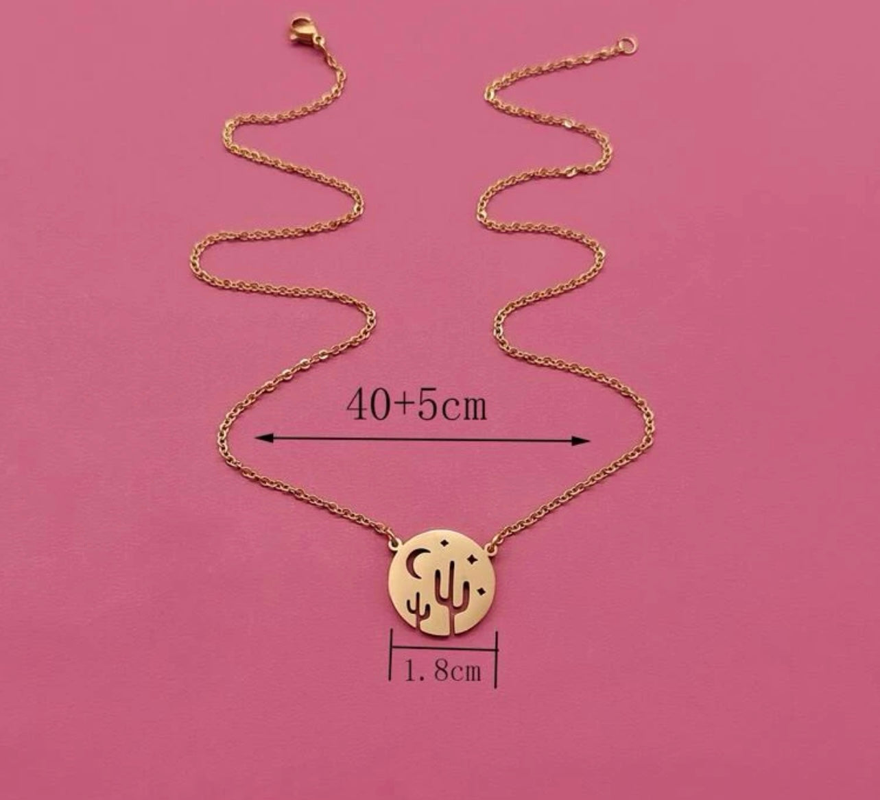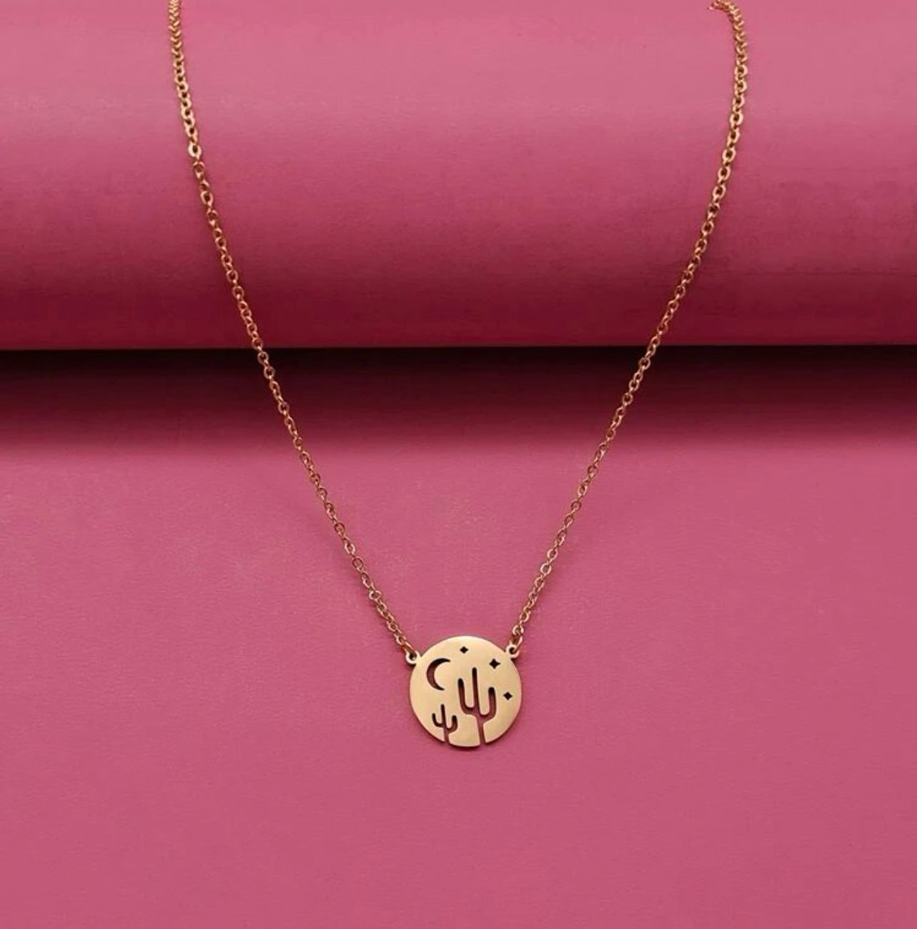 This gold pendant necklace is absolutely gorgeous with intricate cactus and moon cutouts. The Desert Sky is the perfect everyday boho necklace.