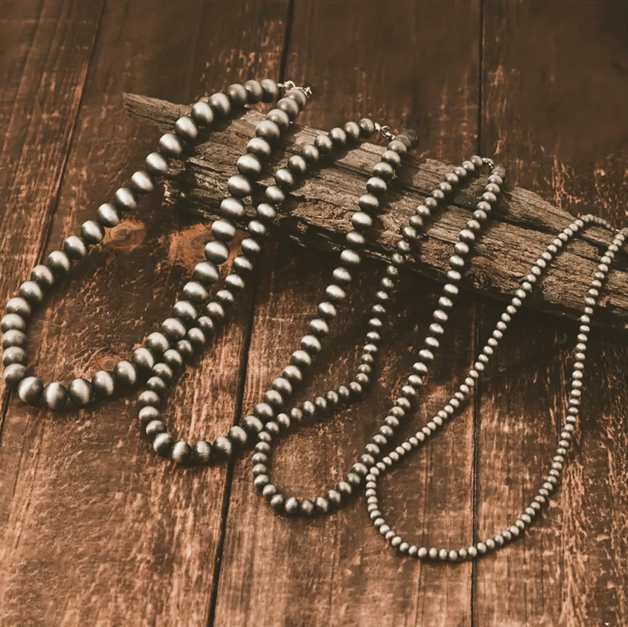 - Vintage-style Navajo pearls in silver tone