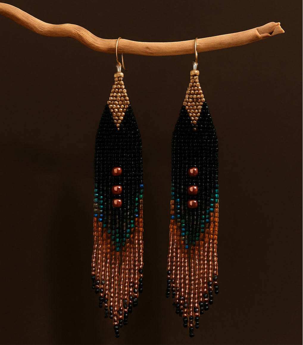Elevate your boho style with these elegant handcrafted beaded earrings, beautifully woven with care and artistry. Each pair features intricate beadwork that blends earthy tones and natural textures, creating a stunning statement piece inspired by the beauty of bohemian design.