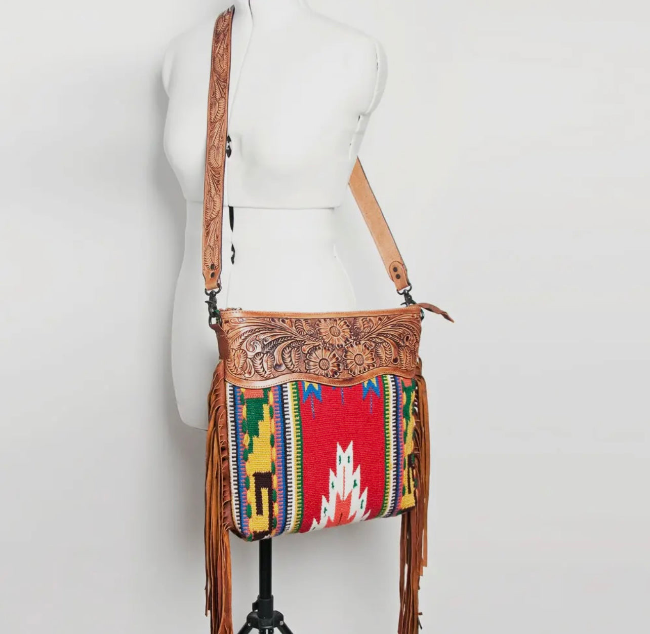 Decorated with beautiful leather fringes giving it a western look.